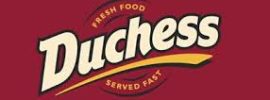 Duchess Restaurant offers a casual/fast food type of dining experience with typical American cuisine such as hamburgers, hot dogs, and French fries. Duchess differs from other types of fast food chains as they have produce delivered to each location daily. Food items are cooked fresh when ordered, nothing is pre-cooked and sitting under heat lamps. Chicken burgers and nuggets are hand cut from real chicken breasts, breaded and fried by hand.